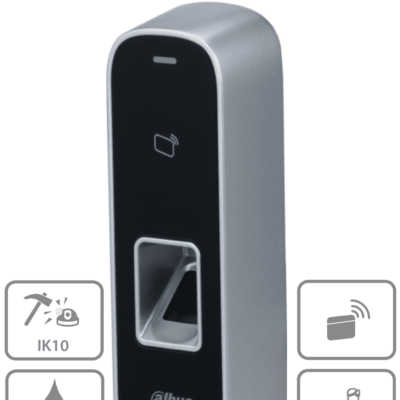 DAHUA ASI1202M-D- Control de Acceso Antivandálico para Exterior/ 3,000 Huellas/ 30,000 Tarjetas ID/ 150,000 Registros/ Metálico/ TCP/IP/ Protección IK10 e IP65/ E&S de Alarma/ RS-485 y Wiegand/ Soporta Lectora Adicional/