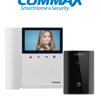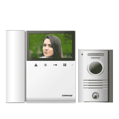 COMMAX CDV43K2P- Kit de videoportero incluye monitor CDV43K2 de 4.3 pulgadas con auricular para respuesta con audio y video desde frente de calle DRC40K, funcion de apertura de puerta, soporta segundo monitor y auricular DP4VHP