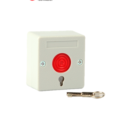 Botón de Pánico de restablecimiento manual metálico con llave de seguridad operación Normalmente Abierto con terminal re movible para función Normalmente Cerrado