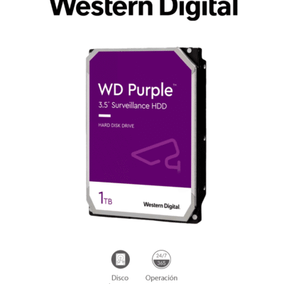 WESTERN WD11PURZ - Disco Duro de 1TB Purple/ Especial Para Videovigilancia/ Trabajo 24/7/ Interface: Sata 6 Gb/s/ Hasta 64 Cámaras/ Hasta 8 Bahías de Discos Duros/ 3 Años de Garantía
