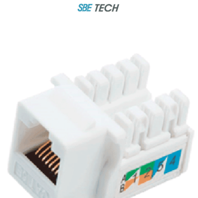 Módulo Jack Categoría 6, 8 posiciones, RJ45, cumple con los requerimientos para trabajar redes LAN a 1Gb/s 1000BASE-T, montaje fácil y rápido en paneles de parcheo y placas de pared SBE TECH, excelente para aplicaciones VoIP y PoE.