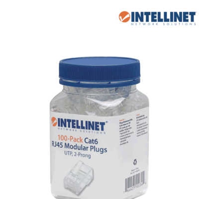 INTELLINET 502344 PLUG RJ45 CAT6 MULTIFILAR UTP BOTE 100 PZAS ORO 15-MICRAS UTP, 2 puntas, para cable multifilar, 100 plugs en bote