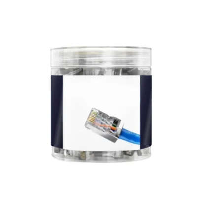 1 bote con 100 plugs rj45 categoría 6, para nuestros cables multifilares, especialmente diseñados para nuestras instalaciones de telecomunicaciones que requieren de una flexibilidad extra ya sea por las curvas o los espacios reducidos.