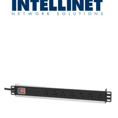 INTELLINET 713993- Barra PDU, 8 contactos, para gabinetes/racks de 19", 1U, con protección contra sobrecarga y botón On/Off.