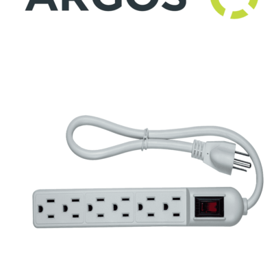 ARGOS 9700250 - Barra multicontactos con supresor de picos / 6 tomas aterrizadas / Uso interior / Color blanco / 110-125V AC / 1875W /
