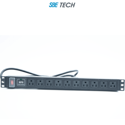 SBETECH SBE-TC010SPV - PDU horizontal con 10 contactos polarizados, supresor de picos y diseño para montaje en rack de 19" y 1U