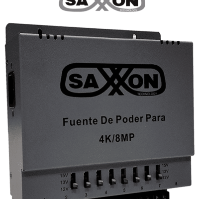 SAXXON ENERGIA PSU1208A-4K - Fuente de poder Regulable Metálica/ Conexión de Hasta 8 Canales/ Voltaje de Ajuste 12V 13V o 15V cc/ Salida de Hasta 5 Amp en los 4 Canales/ Instalación en Pared