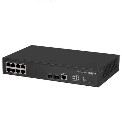 DAHUA DH-AS4300-8GT2GF - Switch Gigabit administrable de capa 2 con 8 puertos 10/100/1000 Base-T y 2 ranuras SFP de 1 Gbps. Ofrece una capacidad de switching de 20 Gbps y viene con una robusta carcasa metálica, ideal para redes de alto rendimiento.