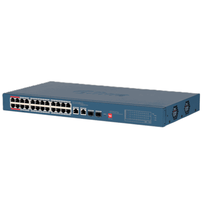 DAHUA DH-S4101-24ET2GF-360-C Switch Administrado en la nube de 26 puertos/ 24 puertos PoE/ larga distancia de 250 m/ PoE watchdog / 10/100 Mbps/ Poe 2.0/ 8.8 Gbps/