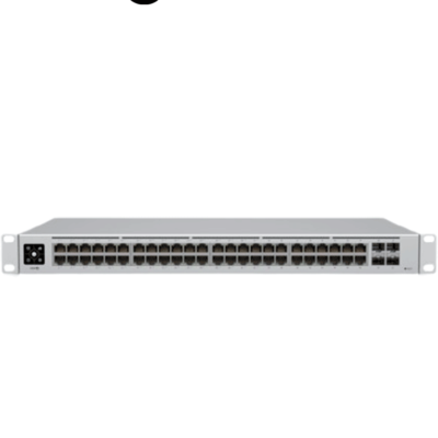 UBIQUITI USW-48-POE UniFi Switch de Capa 2 con 48 puertos (32 PoE 802.3af/at + 16 Gigabit) y 4 puertos 1G SFP, con una potencia de 195W y pantalla informativa.