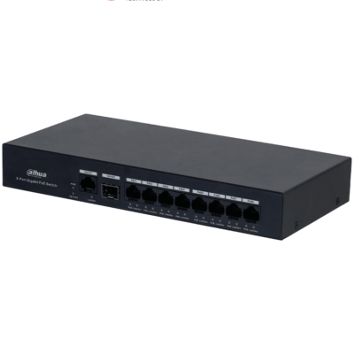 DAHUA DH-PFS3110-8GT-65 - Switch PoE inteligente con 8 puertos Gigabit, 60W de potencia total y switching de 20 Gbps. Ideal para alimentar y conectar dispositivos IP con protección contra descargas eléctricas.