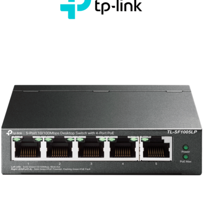 TP-LINK TL-SF1005LP - Switch PoE no administrable con 5 puertos Fast Ethernet, incluyendo 4 puertos PoE AF. Presupuesto PoE de hasta 41W y modo extendido para conexiones de hasta 250m.