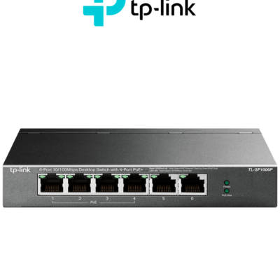 TP-LINK TL-SF1006P - Switch PoE no administrable con 6 puertos Fast Ethernet, incluyendo 4 puertos PoE AF y AT. Suministro PoE hasta 67W y modo extendido para conexiones de hasta 250m.