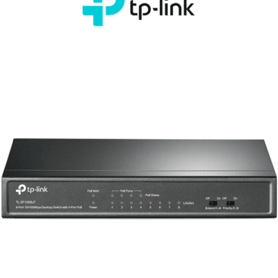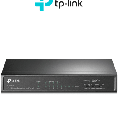 TP-LINK TL-SF1008P -Switch PoE no administrable con 8 puertos Fast Ethernet, que incluye 4 puertos PoE AF y AT. Ofrece un presupuesto PoE de hasta 66W y soporta modo extendido para conexiones de hasta 250m de longitud.