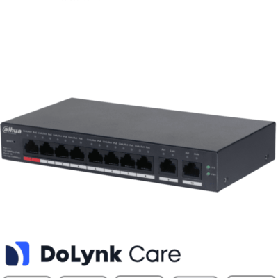 DAHUA DH-CS4010-8ET-60 Switch Poe de 8 Puertos Gigabit/ Poe Inteligente/ 60Watts Totales/ 2 Puertos uplink/ Switching 4.8Gbps/ Protección de Descargas/ Plataforma DoLynk Care