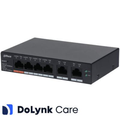 DAHUA CS4006-4GT-60 - Switch PoE de 6 Puertos Gigabit/ 4 Puertos PoE 10/100/1000/ 2 Puertos Uplink 10/100/1000/ 60 Watts Totales/ Administrable en la Nube por DoLynk Care/ PoE Hasta 250 Metros/ Carcasa Metalica/ Switching 12 Gbps/ #LoNuevo
