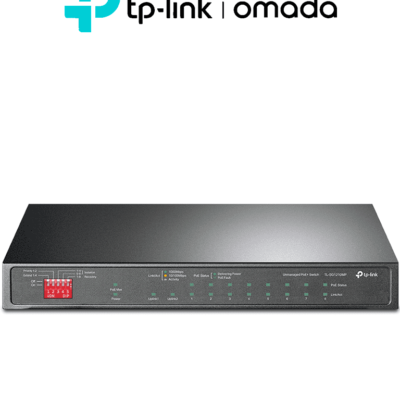 TP-LINK TL-SF1009P - Switch PoE no administrable con 9 puertos Fast Ethernet, incluidos 8 puertos PoE AF y AT. Ofrece un presupuesto PoE de hasta 65W y soporta modo extendido para conexiones de hasta 250 metros.
