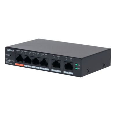 DAHUA DH-SF1006LP - Switch PoE de 6 Puertos Fast Ethernet/ 4 Puertos PoE 10/100/ 36 Watts Totales/ 2 Puertos Uplink RJ45 10/100/ PoE Watchdog/ Soporta hasta 250mts sobre UTP CAT 6/ Protección Contra Descargas/ #LoNuevo