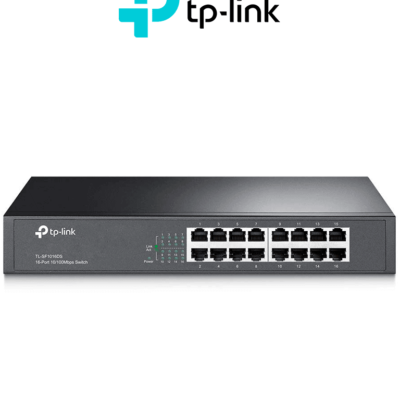 TP-LINK TL-SF1016DS - Switch no administrable con 16 puertos Fast Ethernet, diseñado para montaje en rack o en escritorio.