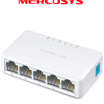 El Switch Mercusys Fast Ethernet de 5 puertos es un dispositivo compacto y eficiente que permite la conexión de múltiples dispositivos a una red local.