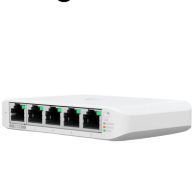 El Switch Flex Mini (USW Flex Mini) es un conmutador de capa 2 totalmente administrado con (5) puertos GbE RJ45, incluida (1) entrada PoE 802.3af. El USW Flex Mini se puede alimentar con PoE (a través del puerto 1) o su adaptador de corriente USB-C incluido *. Este interruptor también se puede monitorear o configurar desde cualquier lugar con la aplicación web y la aplicación móvil potentes e intuitivas de UniFi Network.