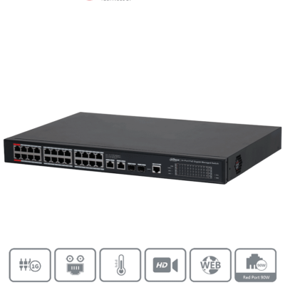 DAHUA DH-S4228-24GT-240 Switch PoE Gigabit Administrable con 24 puertos PoE, ideal para transmisión de larga distancia (hasta 250 m), perfecto para redes de Capa 2. #LoNuevo