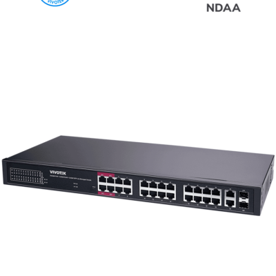 VIVOTEK AW-GEL-285A-380 - Switch PoE 24 puertos Administrable Lite, 20 puertos GE 30W PoE, 4 puertos GE 90W PoE, 2 puertos GE UTP, 2 puertos GE SFP lite managed PoE, 56 Gbps, 380W totales, PoE Extendido 250 Mts, NDAA