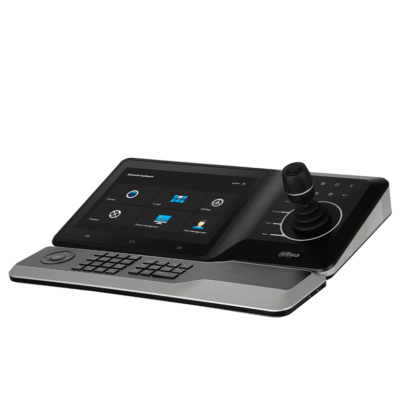 El DAHUA DHI-NKB5000-F es un teclado controlador de red con pantalla táctil de 10.1" (1280×800), ideal para manejar cámaras PTZ, DVR, NVR y plataformas CMS. Integra joystick de 4 ejes para control fluido de PTZ, soporta decodificación en 4K, y multipantalla (1/4/9/16). Dispone de salidas para videowall, grabación en USB, y snapshot en un solo dispositivo. Ofrece múltiples interfaces: 2 × RJ-45 Gigabit, Wi-Fi 2.4 GHz, RS-485 y RS-232, además de extensiones físicas mediante teclado adicional. Perfecto para centros de monitoreo que necesitan control ágil y eficiente.