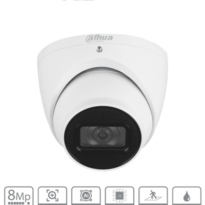 DAHUA DH-IPC-HDW3841EM-S-S2 - Cámara IP Domo de 8 MP con diseño Eyeball, lente 2.8 mm, y tecnología WizSense. Ofrece visión nocturna con IR de 30m, SMD 4.0 y AI SSA para análisis inteligente. Incluye ranura para MicroSD, y protección IP67 soportando PoE.