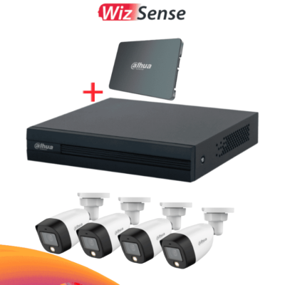 DAHUA FULLCOLORKIT-A - Kit de 4 Canales Full Color 2 MP con Audio y DVR Cooper-I WizSense. Incluye 4 cámaras Full Color 2 MP con micrófono integrado. Sistema de 4 canales más 1 IP y 4 SMD Plus. Incluye accesorios y búsqueda de humanos con IA.