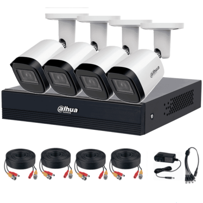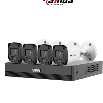 El SUA-KIT/XVR1E04-I/4-B20M-0280B de Saxxon by Dahua es un kit de videovigilancia completo que integra un videograbador digital HDCVI de 4 canales y 4 cámaras bullet metálicas de 2MP con lente de 2.8 mm. Las cámaras cuentan con visión nocturna infrarroja de hasta 20 metros, protección IP67 para exteriores y cuerpo metálico de alta durabilidad. El grabador es compatible con tecnologías HDCVI, AHD, TVI, CVBS e IP, y ofrece compresión H.265+ para optimizar el espacio en disco. Ideal para hogares o negocios, permite monitoreo remoto por app móvil y grabación flexible por horario, evento o detección de movimiento.