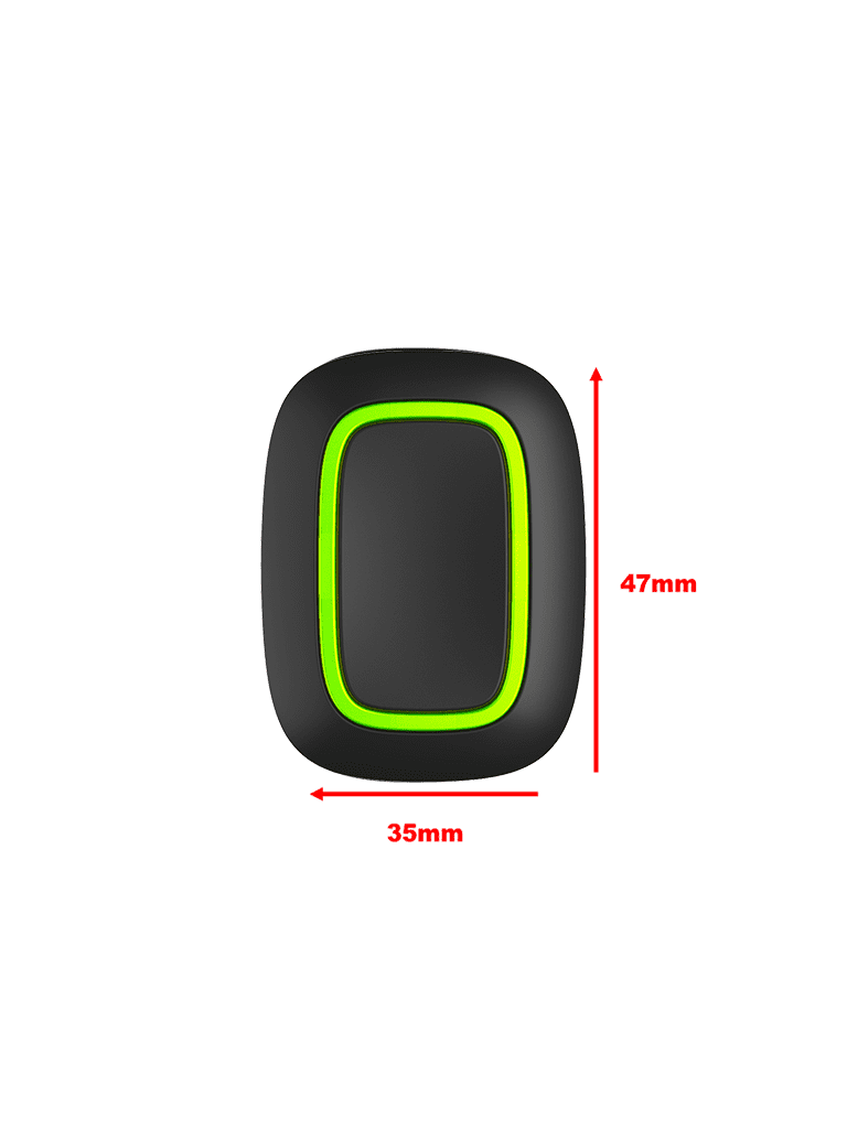 El botón está equipado con una protección contra la activación accidental y transmite alarmas a una distancia de hasta 1,300 metros desde el hub. Tenga en cuenta que la presencia de cualquier obstáculo que impida la señal (por ejemplo, paredes o pisos) reducirá esta distancia.