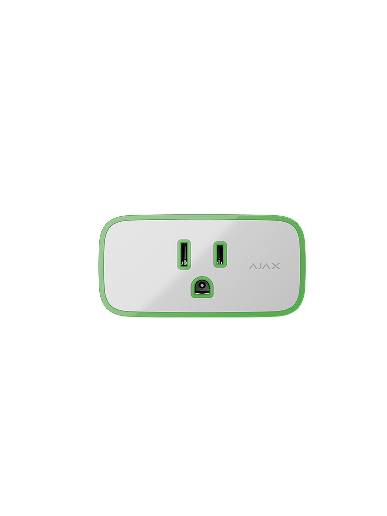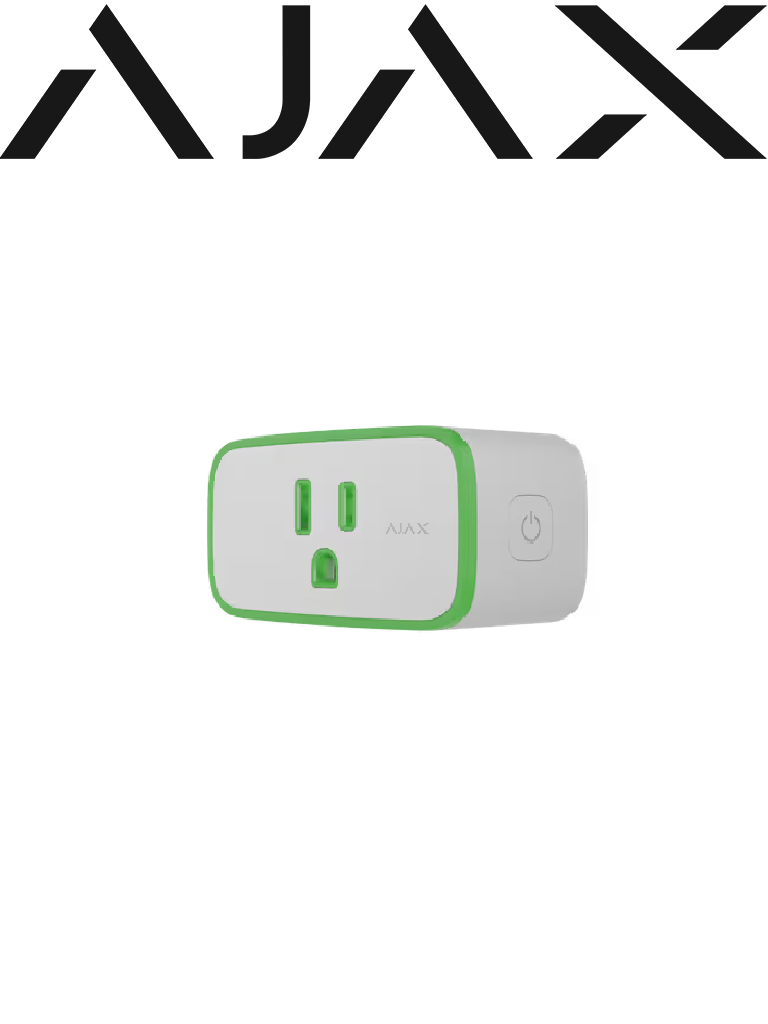 El enchufe inteligente controla la alimentación de los electrodomésticos conectados a este, con una capacidad de carga de hasta 1.8 kW. Puede gestionarse mediante la app Ajax, los escenarios de automatización, pulsando el botón de control en la carcasa del enchufe, el Button o el interruptor inteligente LightSwitch.