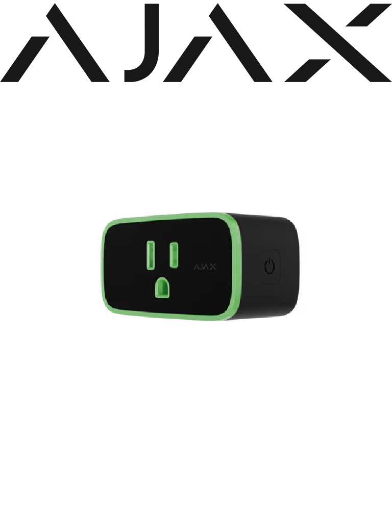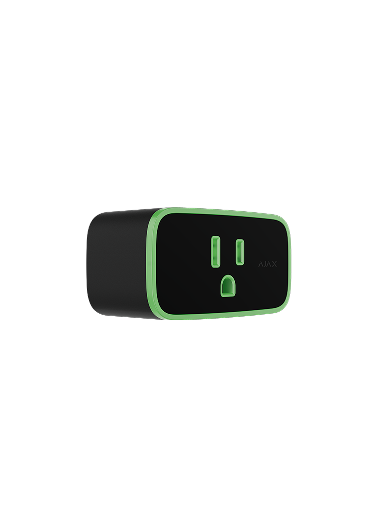 El enchufe inteligente controla la alimentación de los electrodomésticos conectados a este, con una capacidad de carga de hasta 1.8 kW. Puede gestionarse mediante la app Ajax, los escenarios de automatización, pulsando el botón de control en la carcasa del enchufe, el Button o el interruptor inteligente LightSwitch.