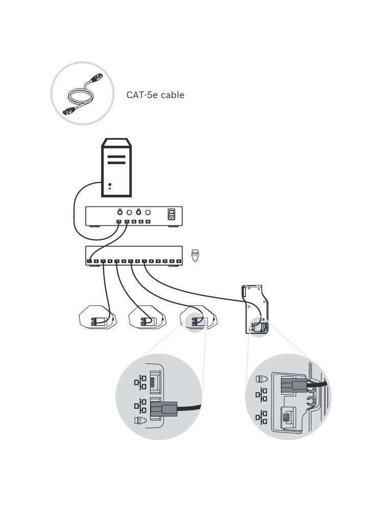 2 conexiones RJ45 compatibles para la alimentación y la comunicación del sistema.
