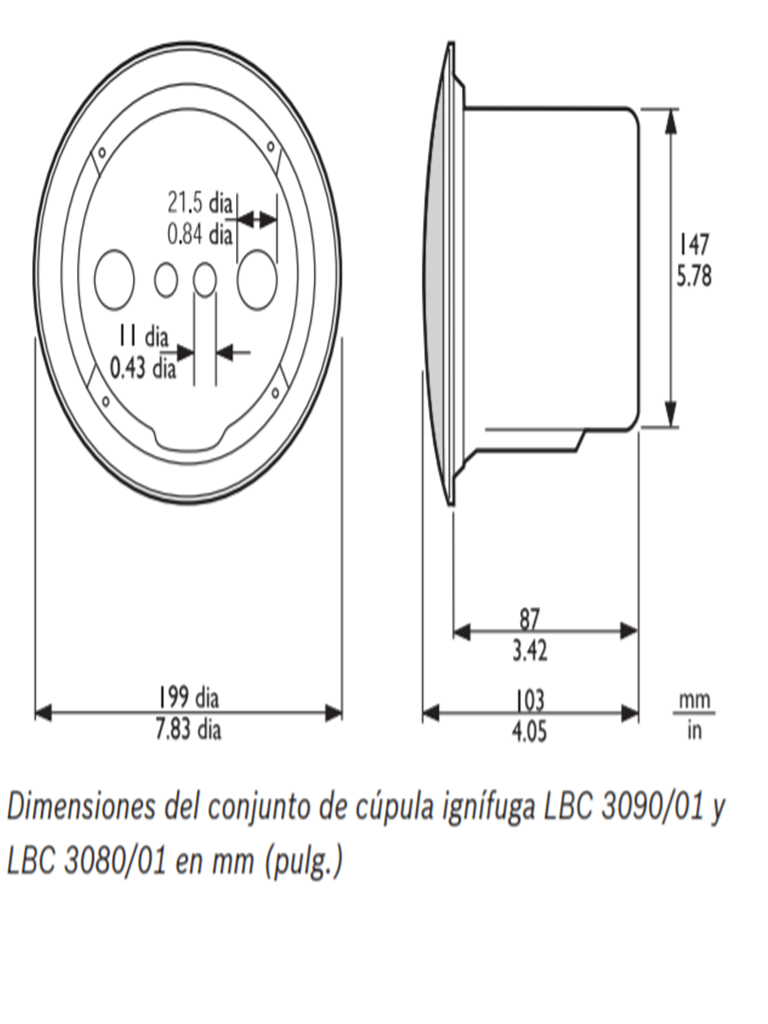 Durante un incendio, la cavidad del falso techo puede permitir que el fuego o el humo se extiendan por el edificio. Para evitar que el fuego entre en esa cavidad a través del altavoz de techo, puede instalarse una cúpula ignífuga de acero LBC 3080/01. Se monta en el conjunto del altavoz con cuatro tornillos de rosca, suministrados con la cúpula ignífuga. La cúpula ignífuga dispone de orificios para dos arandelas aislantes (suministradas) y dos prensacables (PG 13). La cúpula ignífuga sólo puede utilizarse con los siguientes altavoces para montaje en techo: LBC 3087/41, LBC 3090/01, LBC 3090/31, LHM 0606/00 y LHM 0606/10