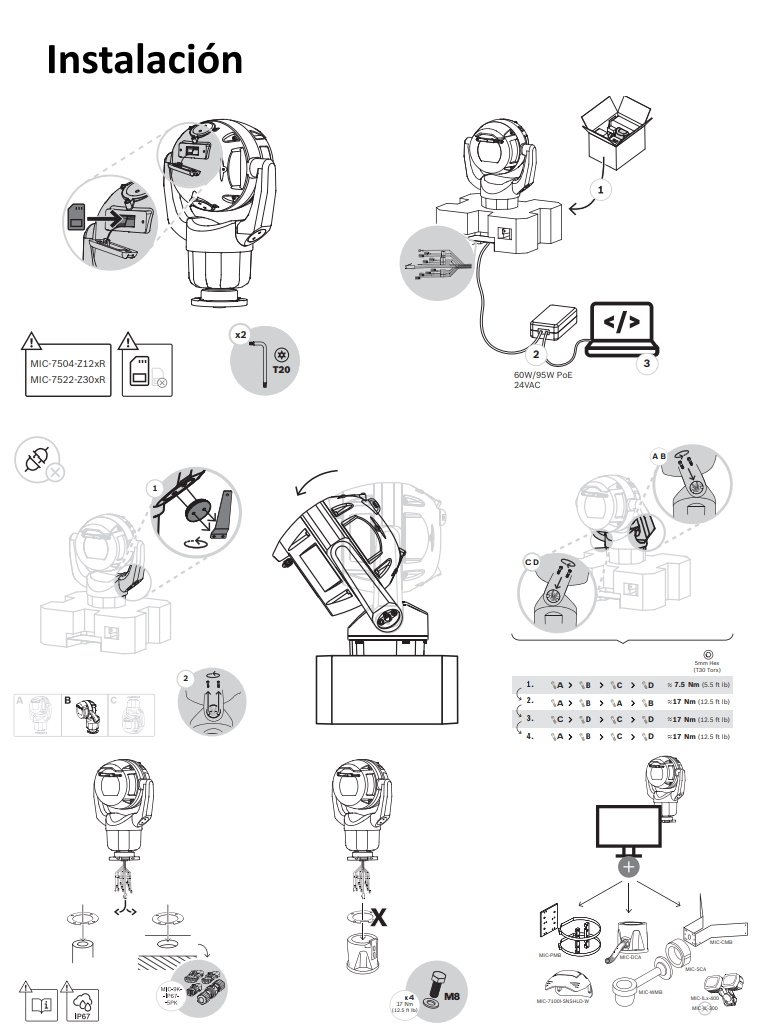 Nota: MIC-7522-Z30BR PTZ 2MP HDR 30x IP68 mejorado, negro y Desempañador de Lente Cámara PTZ rugerizada; 1080p, 30x, captura de imágenes starlight, desempañador, ranura para tarjeta SD. Negro (RAL 9005). Acabado arenoso. Número de pedido: MIC-7522-Z30BR Principales características