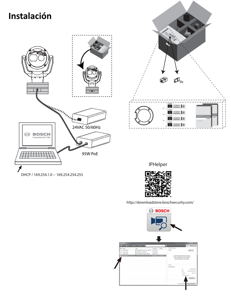 - Alta potencia 95W High Power over Ethernet (requiere un midspan NPD-9501A de Bosch (se vende por separado). 56 VCC.
