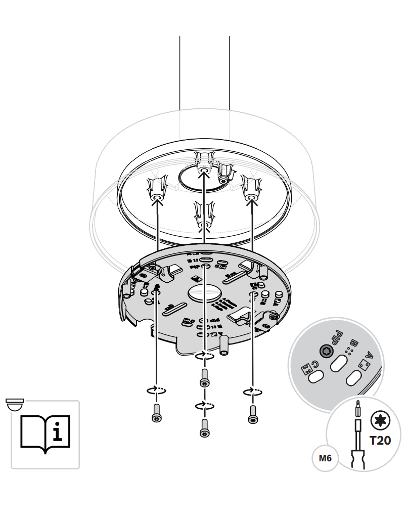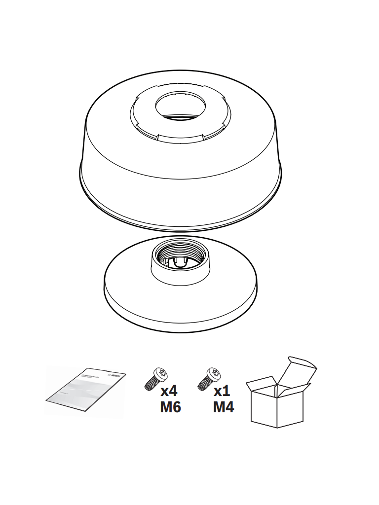 1 Placa de conexión para colgar 1 Tapa resistente a la intemperie 1 Tornillo T20 M4 x 12 mm 1 Tornillo T20 M4 x 18 mm 4 Tornillo T20 M6 x 12 mm 1 Guía de instalación rápida |