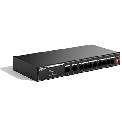 DAHUA SF1010LP – Switch PoE de 10 Puertos Fast Ethernet/ 8 Puertos PoE 10/100 / 65 Watts Totales / 2 Puertos Uplink RJ-45/ PoE watchdog/ Hasta 250 metros/ Switching 12 Gbps/ Protección Contra Descargas/ #LoNuevo