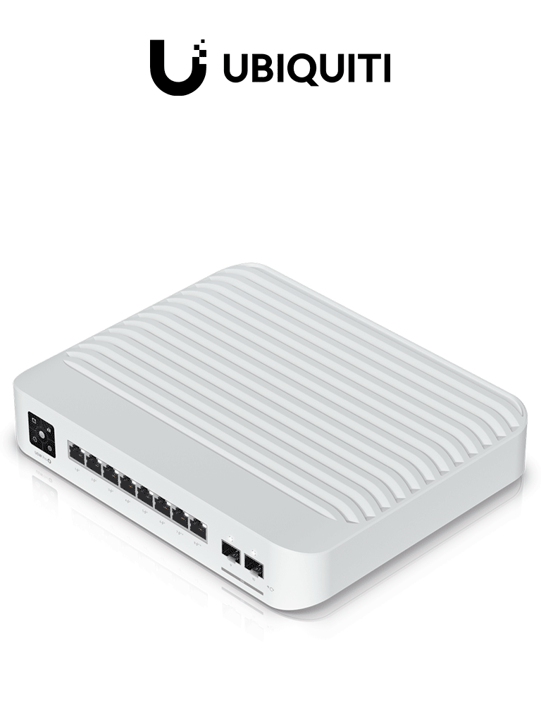 Un conmutador de capa 3 de 8 puertos con salida PoE+ y PoE++.