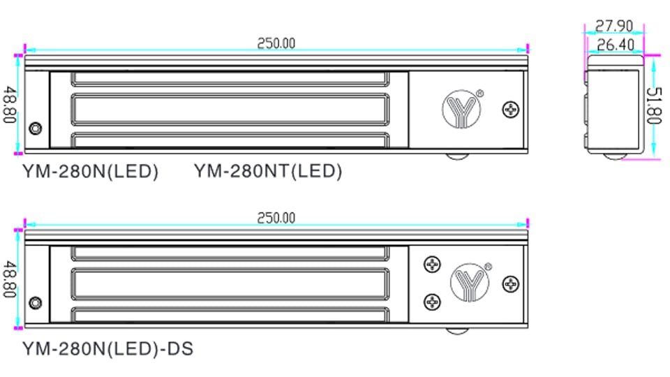 Cerradura magnética de una sola puerta (LED) Modelo: YM-280N (LED) Cerradura magnética con 600 libras de fuerza de sujeción para puerta simple, como puerta de vidrio, puerta de madera, puerta ignífuga, puerta corredera y puerta de metal. También es con indicador LED. |