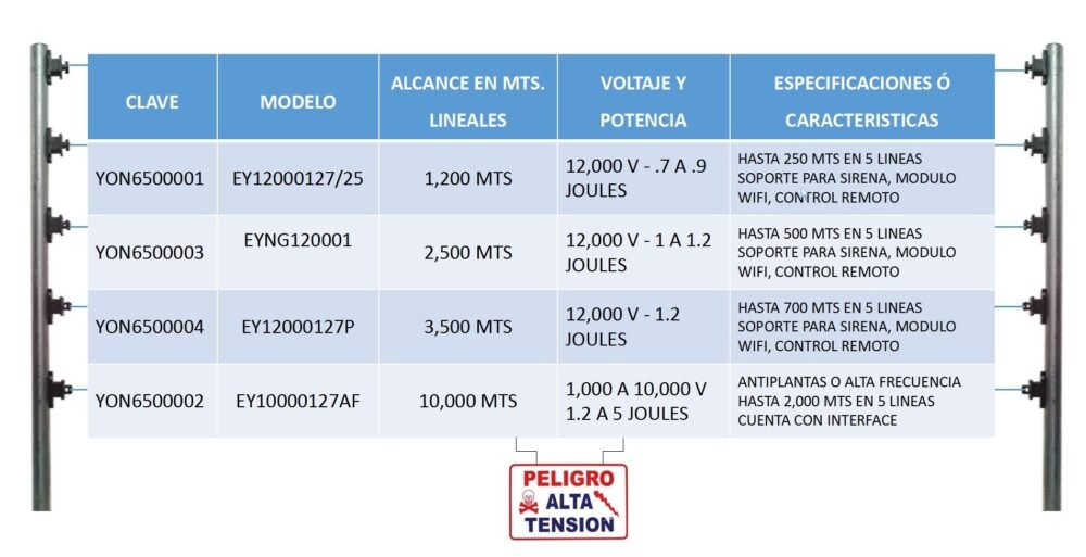 Información general El mejor y mas rentable sistema de protección perimetral para proteger casas, condominios, bodegas, plazas comerciales, instituciones educativas, empresas, predios y cercados de ganado. Es un sistema disuasivo mediante letreros de alto voltaje y repulsivo ya que genera una descarga de mas de 12,000 voltios sin dañar al intruso. Se ofrece un equipo confiable, eficiente y fácil de instalar. Energizador para cerca eléctrica de 10,000 Volts. Equipo: Con interfase. Su alcance es de hasta 10,000 metros lineales. NOTA: Este producto es de alta frecuencia, al encender el equipo y ajustar el potenciómetro este estará emitiendo un zumbido durante su funcionamiento, este sonido es de manera normal así trabaja el equipo. |