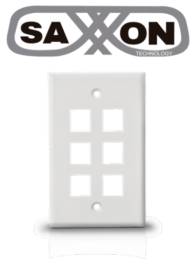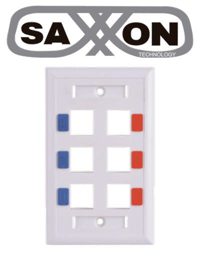 SAXXON A1756E - Placa de pared / Vertical / 6 Puertos tipo keystone / Color blanco / Con etiquetas