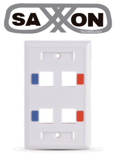 SAXXON A1754E - Placa de pared / Vertical / 4 Puertos tipo keystone / Color blanco / Con etiquetas