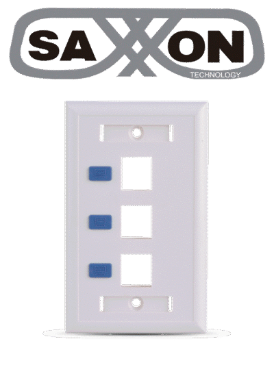 SAXXON A1753E - Placa de pared / Vertical / 3 Puertos tipo keystone / Color blanco / Con etiquetas