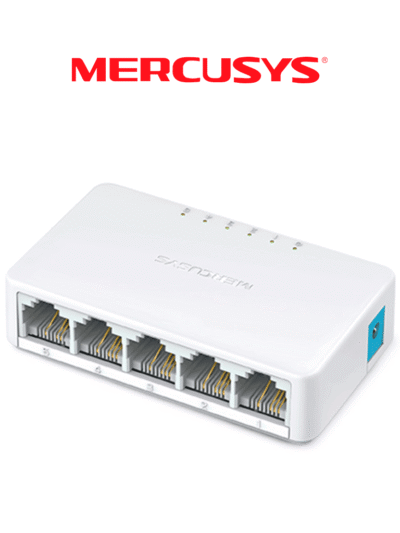 El Switch Mercusys Fast Ethernet de 5 puertos es un dispositivo compacto y eficiente que permite la conexión de múltiples dispositivos a una red local.