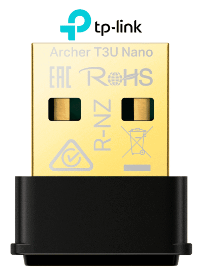 Es un adaptador USB Wi-Fi de doble banda AC1300 que ofrece hasta 1300 Mbps de velocidad y soporte MU-MIMO. Compacto y eficiente, es ideal para actualizar dispositivos sin Wi-Fi.