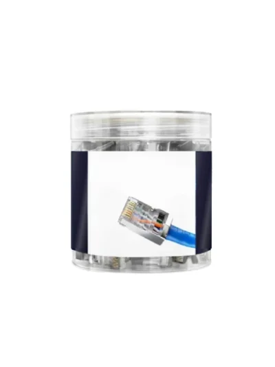 1 bote plástico con 100 plugs cat5e, con chapa de oro de 15 µ