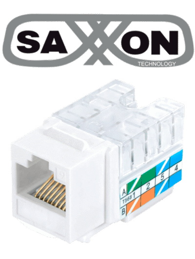 SAXXON M242C6 - Modulo jack keystone RJ45 / Armado sin herramienta / 8 Hilos / CAT 6 / Compatible con calibres AWG 22-26 / Color blanco